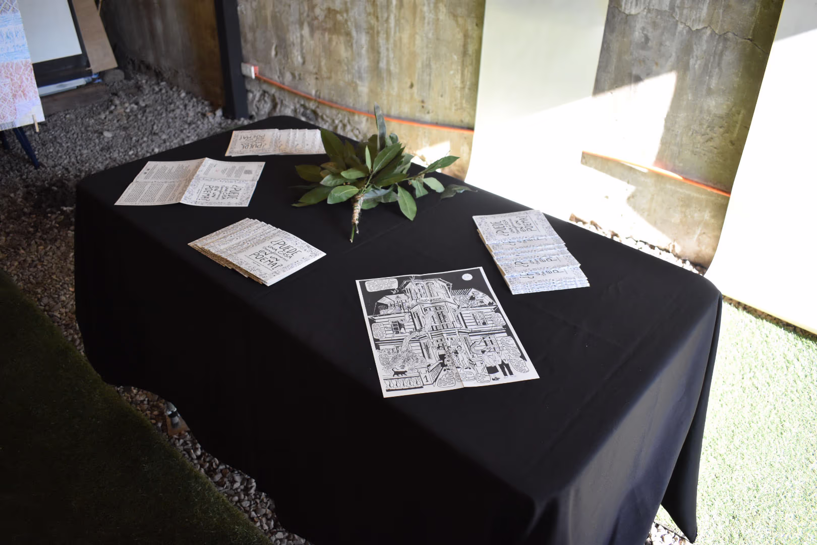 Mi proyecto es el fanzine ¿Puede una casa transformarse en un poema? Guía de apreciación patrimonial del barrio Estación de Cartagena, tomando como inspiración y eje central el castillo Ferreiro, diseñe preguntas sobre el pasado, presente y futuro del barrio, también algunas desde lo sensorial e imaginario. Tiraje de ochenta ejemplares, ilustrado, editado e impreso en el taller temporal.